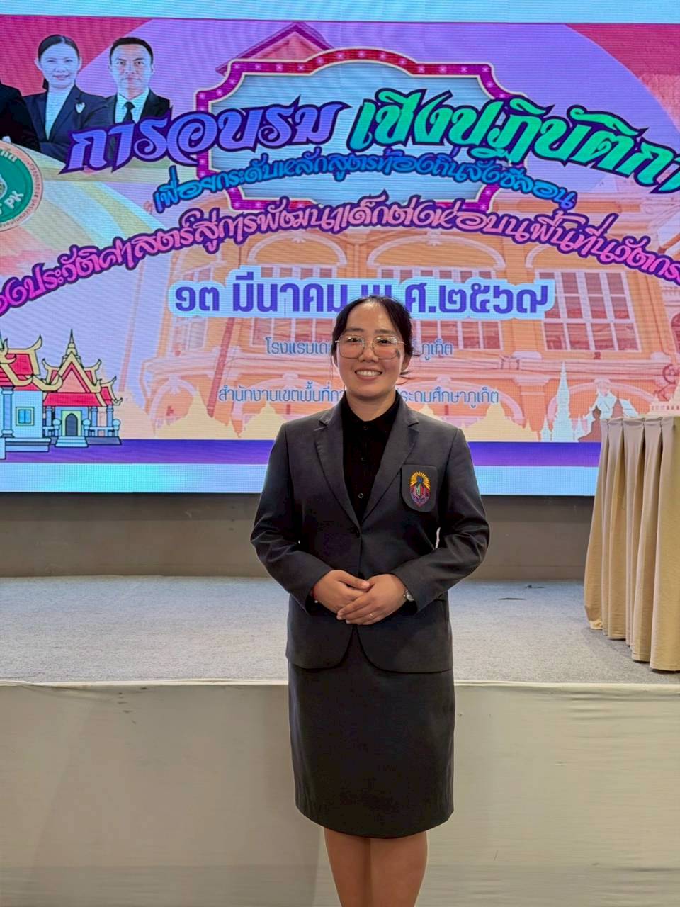 วันที่ ๑๓ มีนาคม พ.ศ. ๒๕๖๙ นางภัทรนิษฐ์ วิเชียรบรรณ ผู้อำนวยการสถานศึกษา มอบหมายให้ นางสาวอาภาพร เรียนชัย ครูโรงเรียนบ้านท่าเรือ เข้าร่วมการอบรมเชิงปฏิบัติการเพื่อยกระดับหลักสูตรท้องถิ่น จังซิลอน เมืองประวัติศาสตร์สู่การพัฒนาเด็กต่งห่อ บนพื้นที่นวัตกรรมการศึกษา ณ โรงแรม เดอะพาโก้ ดีไซน์ จัดโดย สำนักงานเขตพื้นที่การศึกษาประถมศึกษาภูเก็ต เพื่อส่งเสริมและพัฒนาศักยภาพครูในการจัดทำและปรับปรุงหลักสูตรท้องถิ่นให้สอดคล้องกับบริบทของพื้นที่จังหวัดภูเก็ต โดยมุ่งเน้นการบูรณาการองค์ความรู้ด้านประวัติศาสตร์ วัฒนธรรม และอัตลักษณ์ท้องถิ่น “จังซิลอน” เพื่อพัฒนาผู้เรียนให้มีสมรรถนะที่เหมาะสมกับศตวรรษที่ ๒๑ ภายใต้แนวคิดพื้นที่นวัตกรรมการศึกษา และได้นำองค์ความรู้และประสบการณ์ที่ได้รับไปต่อยอดในการพัฒนาหลักสูตรสถานศึกษา รวมถึงการจัดการเรียนการสอนให้มีความทันสมัย สอดคล้องกับบริบทของชุมชน และสามารถพัฒนาผู้เรียนให้มีคุณภาพอย่างรอบด้านต่อไป