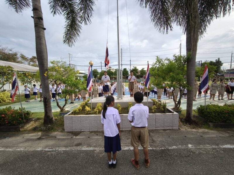 ๒๙ กันยายน ๒๕๖๘ ผู้บริหาร ข้าราชการครู บุคลากรทางการศึกษา นักศึกษาฝึกประสบการณ์วิชาชีพเเละนักเรียน ร่วมเคารพธงชาติและร้องเพลงชาติไทย ในกิจกรรม ๒๘ กันยายน วันพระราชทานธงชาติไทย (Thai National Flag Day) น้อมรำลึกถึงพระมหากรุณาธิคุณของพระบาทสมเด็จพระมงกุฎเกล้าเจ้าอยู่หัว รัชกาลที่ ๖ ที่ทรงพระราชทานธงไตรรงค์เป็นธงชาติไทย ณ เสาธงหน้าอาคาร ๑ ปรียาธร โรงเรียนบ้านท่าเรือ