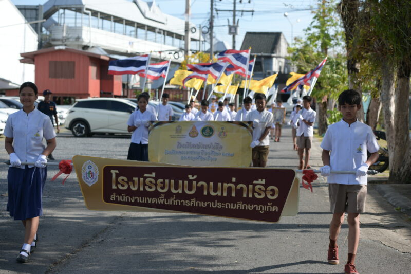 วันที่ ๒๐ กุมภาพันธ์ ๒๕๖๙ โรงเรียนบ้านท่าเรือ จัดพิธีอัญเชิญเกียรติบัตรรางวัลโรงเรียนพระราชทาน และพิธีฉลองรางวัลโรงเรียนพระราชทาน ประจำปีการศึกษา ๒๕๖๗ ณ โรงเรียนบ้านท่าเรือ อำเภอถลาง จังหวัดภูเก็ต เพื่อแสดงความสำนึกในพระมหากรุณาธิคุณอันหาที่สุดมิได้ และประกาศเกียรติคุณความสำเร็จของสถานศึกษา คณะครู บุคลากรทางการศึกษา นักเรียน ตลอดจนผู้มีส่วนเกี่ยวข้องทุกภาคส่วนที่ได้ร่วมแรงร่วมใจพัฒนาคุณภาพการศึกษาอย่างต่อเนื่อง นับเป็นเกียรติสูงสุดและเป็นความภาคภูมิใจอย่างยิ่งของชุมชน สะท้อนถึงความมุ่งมั่นในการบริหารจัดการศึกษาอย่างมีคุณภาพ ตามมาตรฐานการศึกษาของชาติ และการพัฒนาผู้เรียนให้เป็นคนดี มีความรู้ และมีคุณลักษณะอันพึงประสงค์ ในการจัดงานครั้งนี้ ได้รับความอนุเคราะห์และการสนับสนุนการจัดงานจาก วัดท่าเรือ วัดม่าหนิก ในการสนับสนุนสถานที่และสิ่งอำนวยความสะดวก รวมถึง โรงเรียนในเครือข่าย และหน่วยงานราชการในพื้นที่ที่ได้ร่วมสนับสนุนทรัพยากรและกำลังบุคลากรในการจัดเตรียมงานอย่างดียิ่ง โรงเรียนบ้านท่าเรือ ขอขอบคุณทุกหน่วยงาน องค์กร และภาคีเครือข่ายที่ให้การสนับสนุนด้วยดีเสมอมา และจะยังคงมุ่งมั่นพัฒนาคุณภาพการศึกษาให้ก้าวหน้ายิ่งขึ้น เพื่อประโยชน์สูงสุดแก่ผู้เรียนและชุมชนต่อไป
