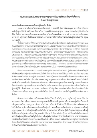 สรุปผลการประเมินตนเองตามมาตรฐานการศึกษาระดับการศึกษาขั้นพื้นฐาน